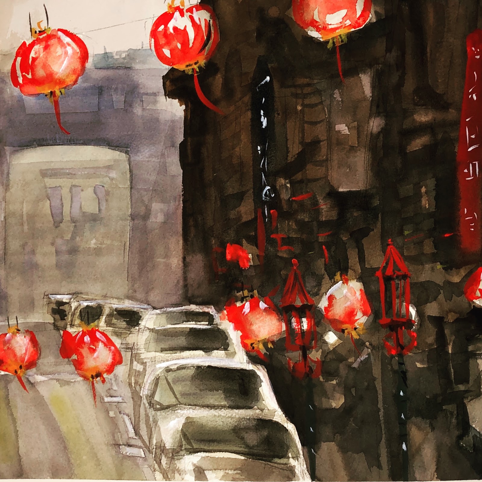 My current artistic interests revolve around flatness and design with maybe a feeling of 3-D using experiments with water media. Looking for patterns using my photography and notes and then transferring to a painting. And maybe including some whimsy and fun.